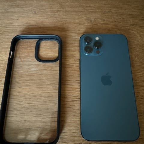 Iphone 12 Pro Max i blå med 128gb i super god stand med 100% batterikapcitet der batteriet lige er blivet skiftet inkl cover.