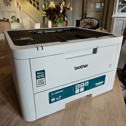 Brother HL-5350DN laserprinter med netværksfunktion. Printeren er designet til sort-hvid udskrivning og har en grå og sort farve. Den har tilslutningsmuligheder via netværk og parallelport, velegnet til kontorbrug. Virker med strømstik, men kender ikke funktioner. Medfølger strømstik.