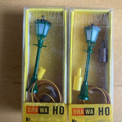 Brawa 5110 - 5stk. banegårdslygter - grønne - højde 9cm. - skala 1:87 - HO. Testet ok!
