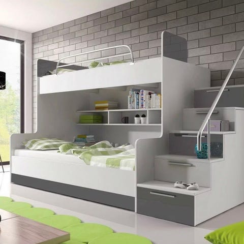 En praktisk og pladsbesparende løsning, hvor to fulde sovepladser er kombineret i én seng. Perfekt til børneværelset eller gæster, når der skal være plads til mere end én sovende uden at optage ekstra gulvplads.