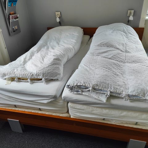Dejlig elevationsseng med madrasser og topmadrasser.