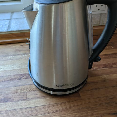 OBH Nordica elkedel i stål med sort håndtag og låg. Elkedlen har en vandstandsmåler og en kapacitet på 1,2 l. Er regelmæssigt afkalket og derfor i rigtig fin stand.