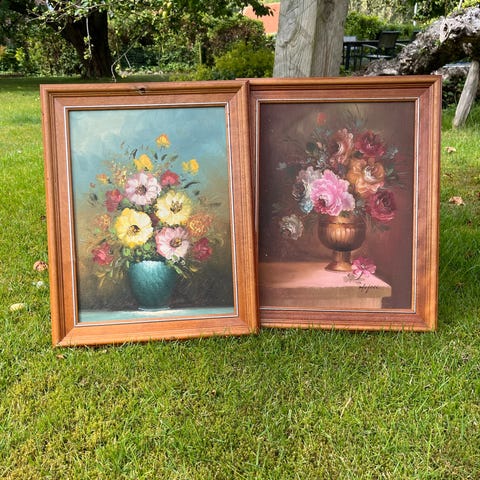 Lille oliemalerier med blomster .35×44 uden ramme 44×53 cm med ramme