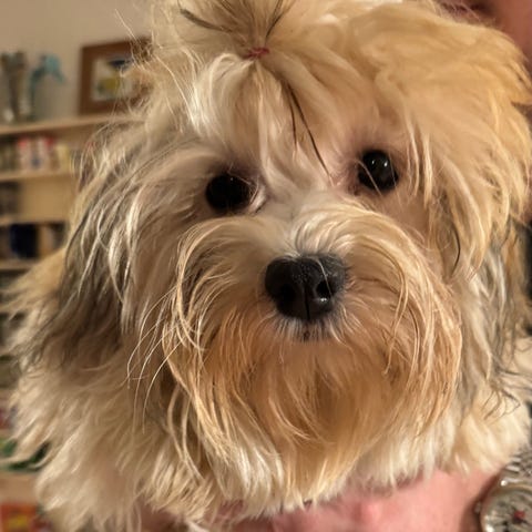 Alba har vi haft siden hun var 6 måneder hun er ran race Bichon Havanais hun er snart 2 år hun er meget lille af racen hun vejer 3 kilo hun kan være alene hjemme hun elsker børn og alle mennesker hun kan med katte og andre hunde grunden til vi skal af med hende er fordi tiden ikke mere er der til det da jeg er begyndt at studere så det er længere transport tuer plus jeg arbejder ved siden af så hun er meget alene og det syntes vi er sundt for hende så vi håber der er en familie der ude vi bor i Frederiksværk kom og hils på hende