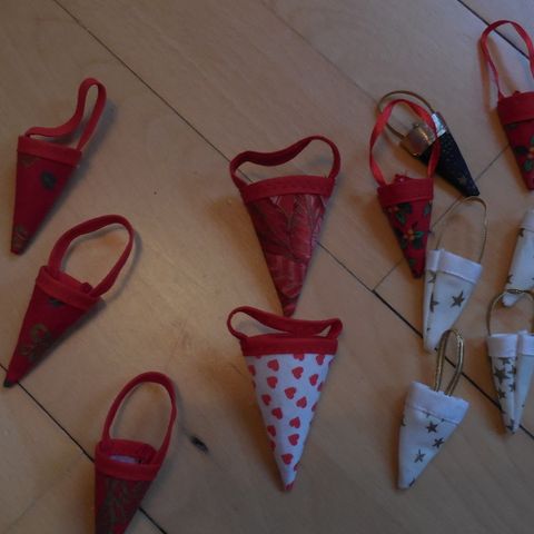11 stof kræmmerhus til juletræet eller troldegrenen 8,5 - 15 cm sælges samlet 50 kr.