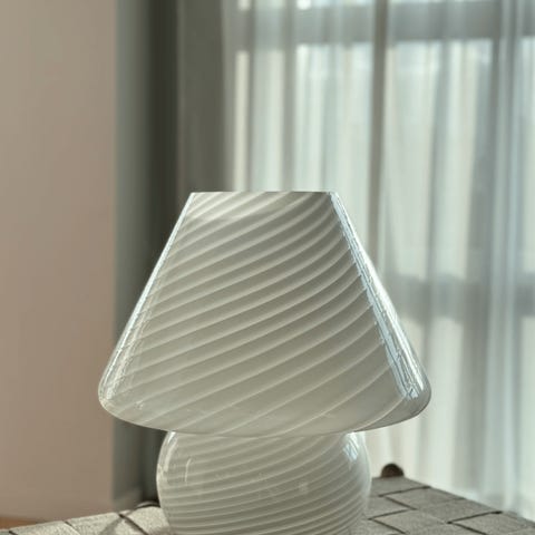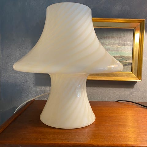 Smukkeste store Murano lampe, mundblæst i ét stykke og håndlavet med den mest detaljerede og flot udførte swirl. Glaskunsten fra Murano i 1970'erne var noget helt særligt, og denne mushroom lampe er et af ikoniske og tidsløse design fra den tid.
