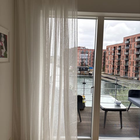 Billeder er desværre taget efter flytning, derfor er gardinet ikke oppe og hænge.