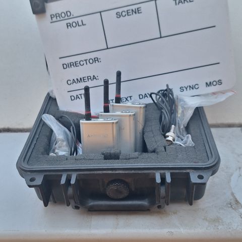 Alt hvad du har brug for så filmsættet er i sync. Ambient 4 stk trådløse sendere. Kan konfirgureres enten som sender eller modtager. Kører på standard AA batterier. Holder en uge selvom du ikke slukker. Meget driftsikker. Tidskodekabler forskellige Lemo XLR BNC forskellige kombinationer så du er godt kørende til alle typer kameraer. Skriv hvis der er noget du kan bruge. Naturligvis rabat hvis du køber det hele. Bemærk at Lemo tidskode kabler er pænt dyre men det kan du jo Google. Pris fra 100.