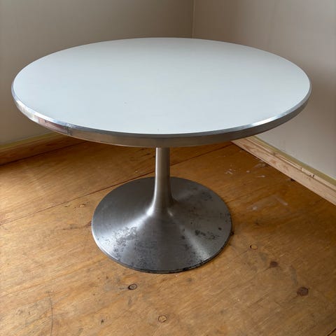 Hvidt rundt bord fra Paustian. Meget få brugsspor på den sorte kant. Kan skilles ad ved afhentning.