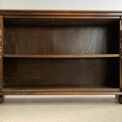bent reolskab i egetrĂŚ med skulpturelt udformede sider