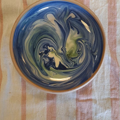 Uglaseret sokkel/bund. Flowerpower ca. 70-80'erne. Del af større brugskunst serie. Naturfarver, varm sirup, mørkegrøn, kakao, mokka, karry. Design Pottemagerstuen