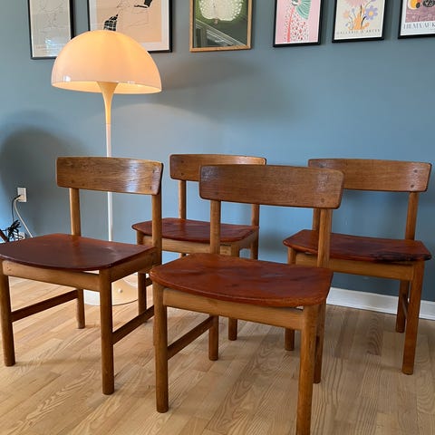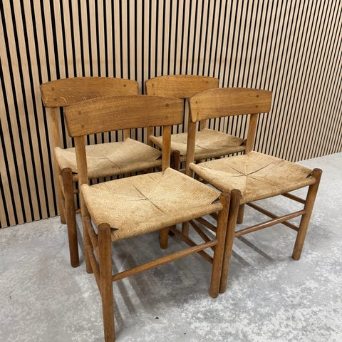 Børge Mogensen model BM86 massiv egetræ spisebord samt 8 stk egetræ spisestole folkestole med flet