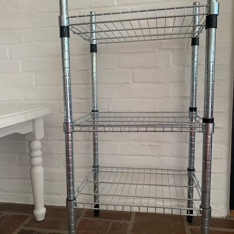 Ikea Omar skoreol i stål. Reolen består af 2 enheder der er sammensat.