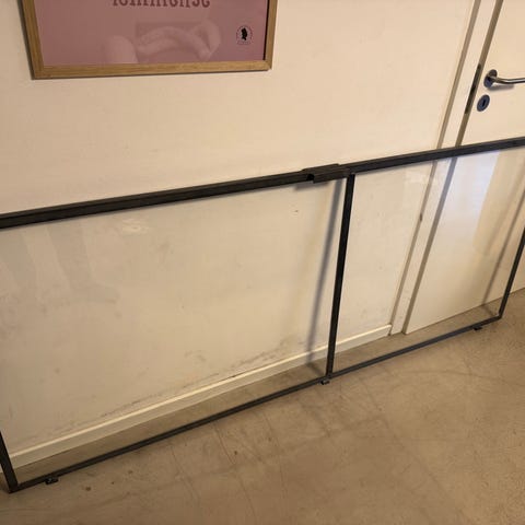 New-york Dør B.89cm H 132cm Vinduer 120cm+120cm Foto før og efter nedtagning,Pris dør 1600 kr 2stk, vinduer 1200kr stk, nogle svejse brænde mærker på nogle ruder,mener der er panzer glas i,lavet af smed på stedet,står i rødovre