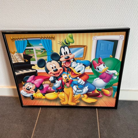 Gammel retro Disney kristtavle med Anders And og Mickey Mouse.