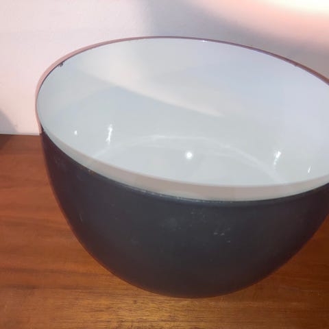 3 gamle originale krenit skåle i blå gul og grøn designet