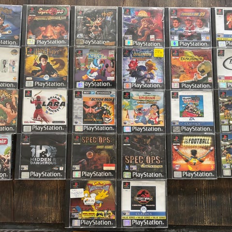 Masser af underholdning med PlayStation ps1 ps2 og ps3 med spil og tilbehør. Alm og Trådløse Controlere og memorycards.