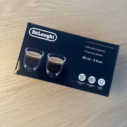 DeLonghi Espressoglas i sæt med 2 stk. glas. Egnet til servering af kaffe. De er dobbeltvægget.