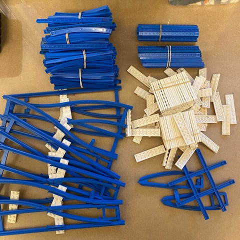 LEGO 12 V skinner og strømskinner. Mere end 20 de lige og 20 af de buede