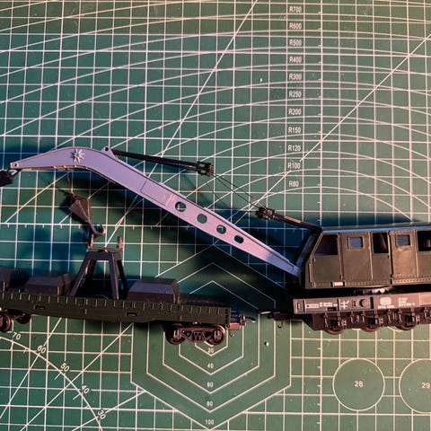Kranen er brugt men fremsår næsten som ny. Desværre mangler bøjlen som skal holde kranarmen i oprejst tilstand. Leveres i original æske.