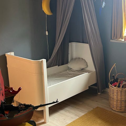 Børneseng designet til både babyer og juniorbørn i et klassisk og enkelt design.