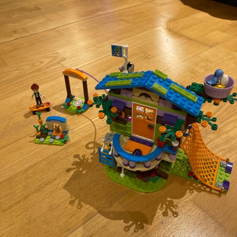 LEGO Friends 41679 skovhus - med forskellige figurer og tilbehør. Indeholder et skovhus med trapper, terrasse, og kajak