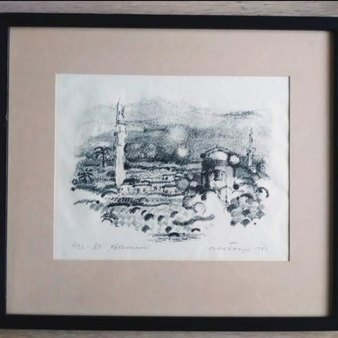 Der er anvendt meget kraftigt papir. Jeg kan ikke afgøre, om det er en litografi eller et kunsttryk.
