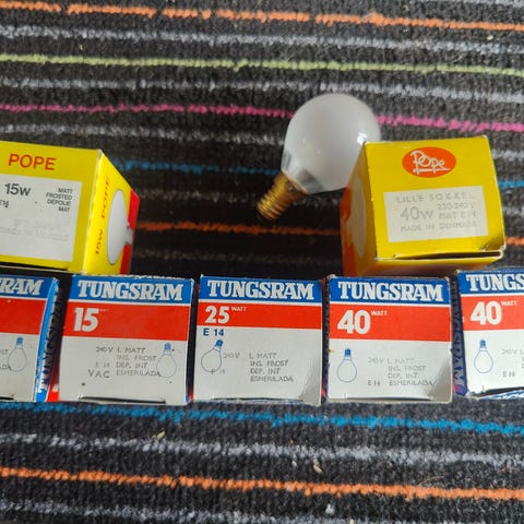Stor samling gammeldags glødepærer for dem der ønsker perfekt farvegengivelse. Virker perfekt.