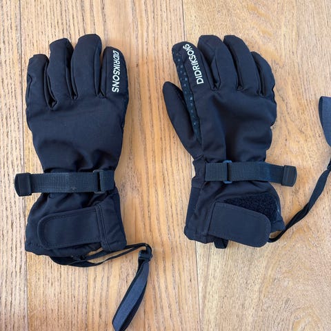 Didriksons børnevanter i størrelse 2-4 år, blå farve, fremstillet i polyester. Vanterne er brugte men i meget fin stand. Der er en flisforing i selve vanten.