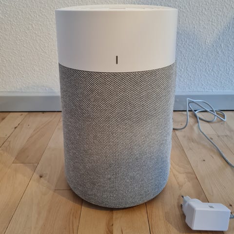 Er meget stille. Vi har haft den i en stue på omkring 25m2 men er nu flyttet til åben gulvplan, så skal have en lidt større én.