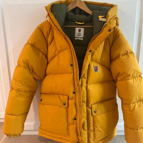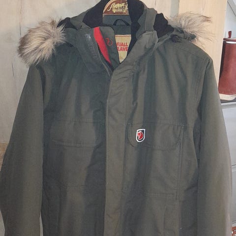Fjällräven vinterjakke i størrelse L, blå farve, fremstillet af poplin materiale. Jakken er designet til mænd og egnet til udendørs brug i vinterperioden. Nypris 3300 kr. Varen kan sendes med DAO.