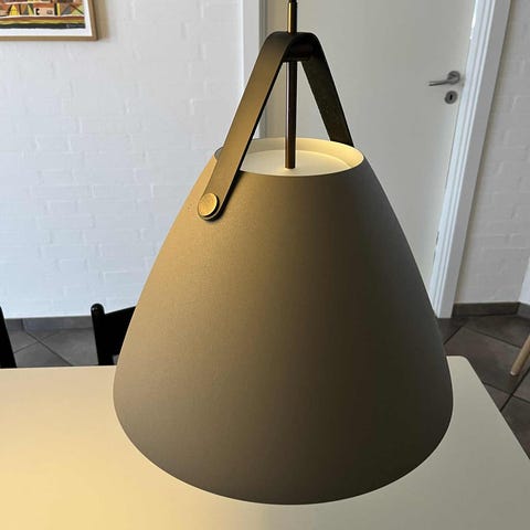 Nordlux Strap loftlampe 27. 2 stk. Sølvgrå metal med sort læder strap. Inkl. pærer der er dæmpbar inkl. fjernbetjening.uden synlige brugsspor.