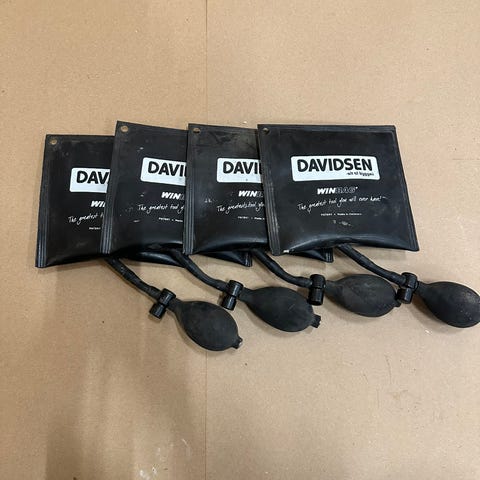Ca 90 nivelleringskiler i en box med håndtag