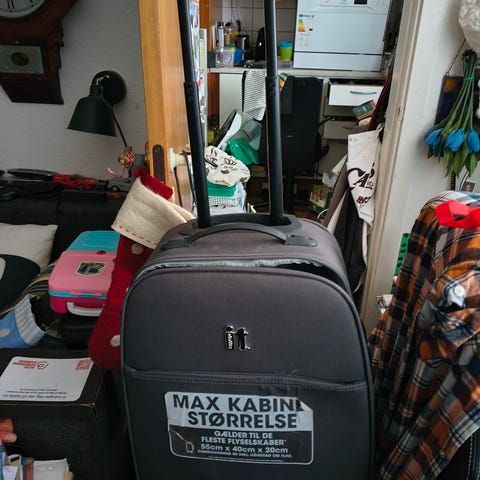 SergioTacchini grå stof Trolley rejse kuffert på 🛞🛞, så hvorfor købe nyt, den bliver jo alligevel ramponeret og kastet rundt under håndteringen i ✈️ havnen 🧑 ✈️ samt måske blive væk under indtjekning og udtjekning, hvis I har en helt ny kuffert vækker opsigt og lettere ved at blive udsat for simpel tyveri 😎🥷, så hvorfor ikke bare spare jer for at få ferien inden den er begyndt, unødvendige ærgrelse og extra udgifter!