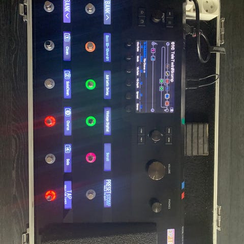 Line 6 Helix LT - meget velholdt, og ganske lidt brugt, og mest i studiet. Der medfølger solid flightcase fra Thon - købt på Thomann. Den er fyldt med både købte og gratis presets og IR’s. Fabrikspresets er også stadig på. Alle presets og IR’s kan også lægges på et medfølgende USB-stik, så den kan resettes. Den er opdateret til nyeste firmware 3.80, og spiller virkelig godt. Der er naturligvis original kasse med. Der er et utal af videoer på nettet, så det er bare at starte fra en ende af. Den perfekte julegave til dig selv. Kan prøves på Amager - sendes ikke, men kom gerne med bud.