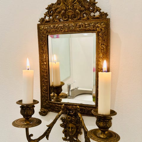 Sjov meget gammel spejl-reflektor fra fyrtårn på vestkysten. Udført i massiv messing. Tilhørende opsats for lysgiver,- muligvis gas. Spejlet har også justerbar vinkel, som ses bagpå.