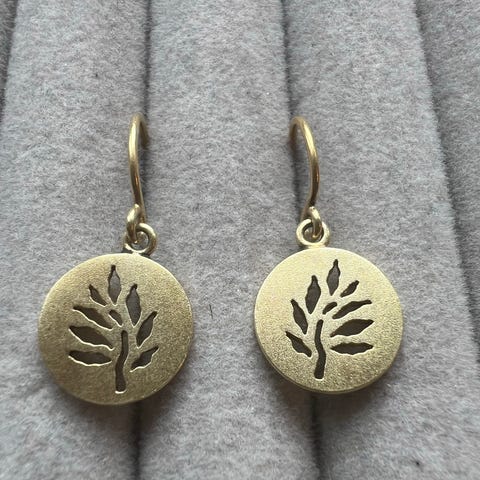 Klassiske øreringe i satinrhodineret 925 sterlingsølv med logo disk med Julie Sandlaus signatur Tree of Life. Øreringene måler 12 mm. i diameter.