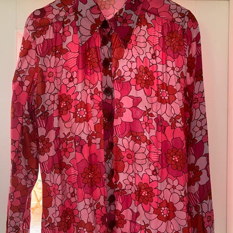 Super smuk skjortekjole fra Tante Betsy i blød strækbart stof , vil passe størrelse Xl-Xxl evt også L.