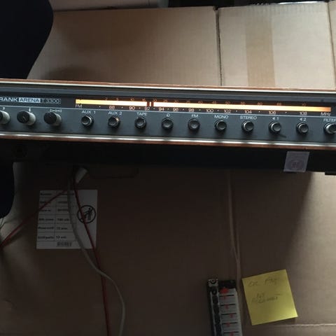Radio fra rank arena. Model T-3300. Kan tænde men er ikke afprøvet med lyd. Der mangler to dreje knapper. Stik medfølger som vist på billedet
