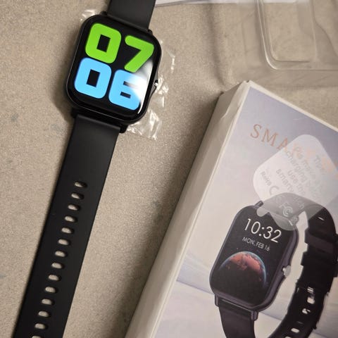 Smart watch/Android watch, kan tilkobles til mobiltelefonen, nyt, med gummi rem, oplades via usb stik, lade kabel medfølger, sælges for kun 200kr, kan også sendes med posten for +50kr