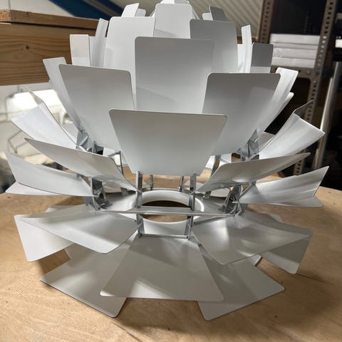 Jeg har haft denne helt igennem fantastiske smukke PH kogle i 22 år men har desværre ikke plads til den mere.... Dengang jeg købte den havde den hængt i en bank...Jeg var så dum ikke at tage billeder da den var hængt op men var slet ikke min plan at den skulle sælges...Den står pt på et sikret lager, men jeg har den lige hjemme for at tjekke om den var okay og så jeg kunne tage lidt billeder af den... Sål beklager de måske ikke helt optimale billeder... I min verden er det den smukkeste lampe der nogensinde er lavet ;-) Hvis du ønsker flere billeder så sig endelig til... ;-)