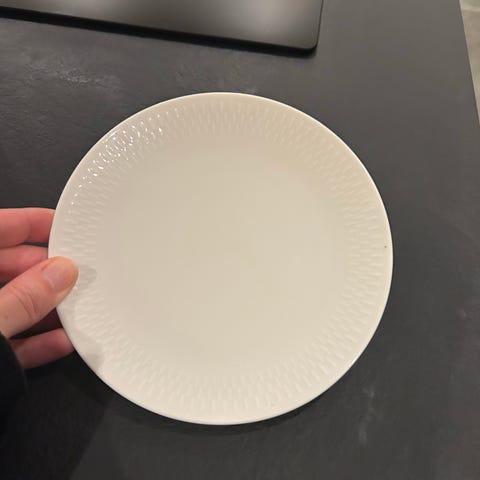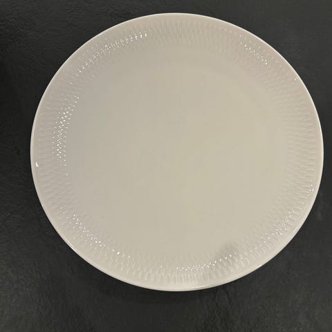 Royal Copenhagen, Hvedekorn suppetallerken i hvid porcelæn med et klassisk og enkelt design.