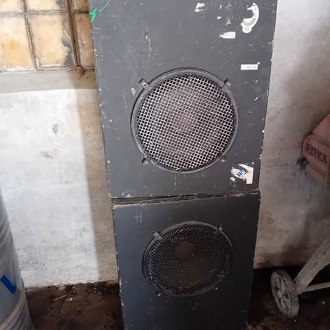 Bashøjtalerkabinet med 2 store Peerless højtalere. Kan afhentes for kr. 150,-