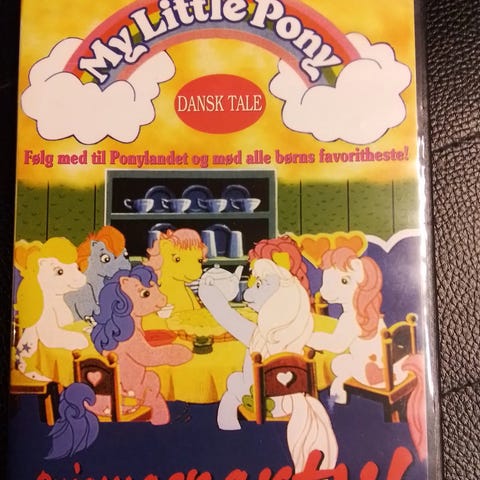 My Little Pony Pyjamasparty VHS børnefilm. Indeholder en film med tema omkring pyjamasparty med karakterer som Clover, Babyponyen og andre. dansk, tale VHS-kassette til afspilning på kompatible videoafspillere.