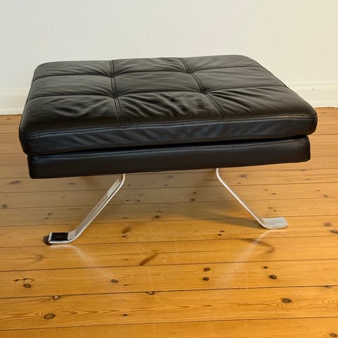 SUPER VELHOLDT LÆDER PUF SÆLGES I SORT LÆDER OG CHROM STEL .
