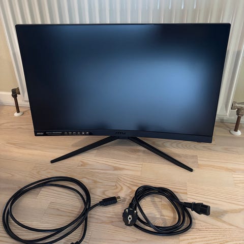 MSI curved 24” skærm med justerbar stander og flere tilslutningsmuligheder. Skærmen har fået en Lenovo stander, da jeg ikke kan finde den originale stander, men den passer og virker som den skal, skærmen er som sagt curved, og er 144hz, sendes ikke, men kan hentes i Ikast eller afleveres i Ikast omegn, mod betaling selfølgelig
