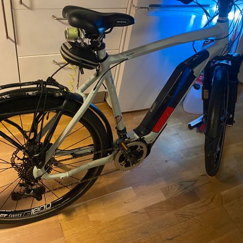 Giant Quick E i fin stand og kører godt da den for det meste har stået indendørs. Den trænger til en vasker og måske et service deraf den lave pris. Bagage tasken bag på, ældre hjelm og lås medfølger.