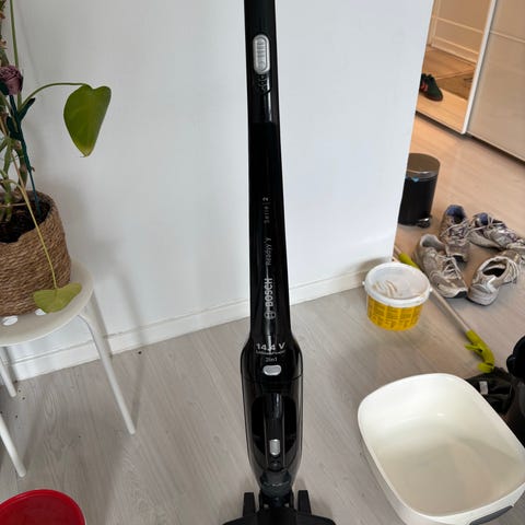 Bosch Serie 2 støvsuger med tilbehør, inklusive slange . Enheden er designet til almindelig rengøring og har et kompakt design.