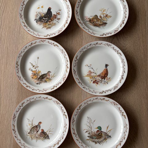 Mads Stage Middagstallerkener 27 cm som nye - motiver, fasankok vagtel gråand og urfugl kr. 350 pr. Stk.