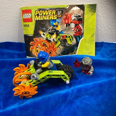LEGO Power Miners legetøjsbil med orange og sort farve. Fremstillet af plastmateriale. Egnet til leg og samling.